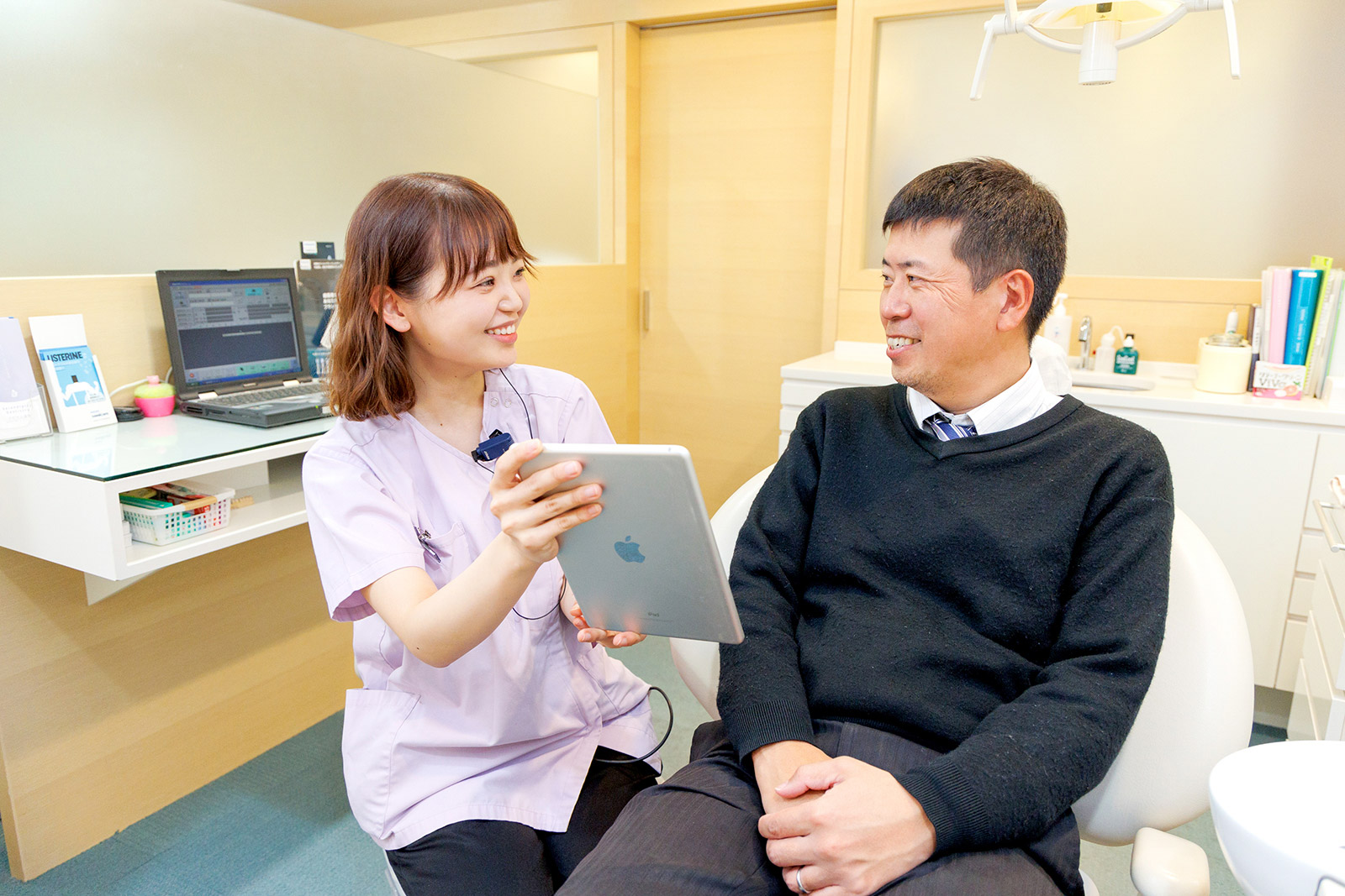 当院では、患者さんが抱えていらっしゃるお口のお悩みや疑問・不安などにお応えする機会を設けております。どんなことでも構いませんので、私たちにお話ししていただけたらと思います。